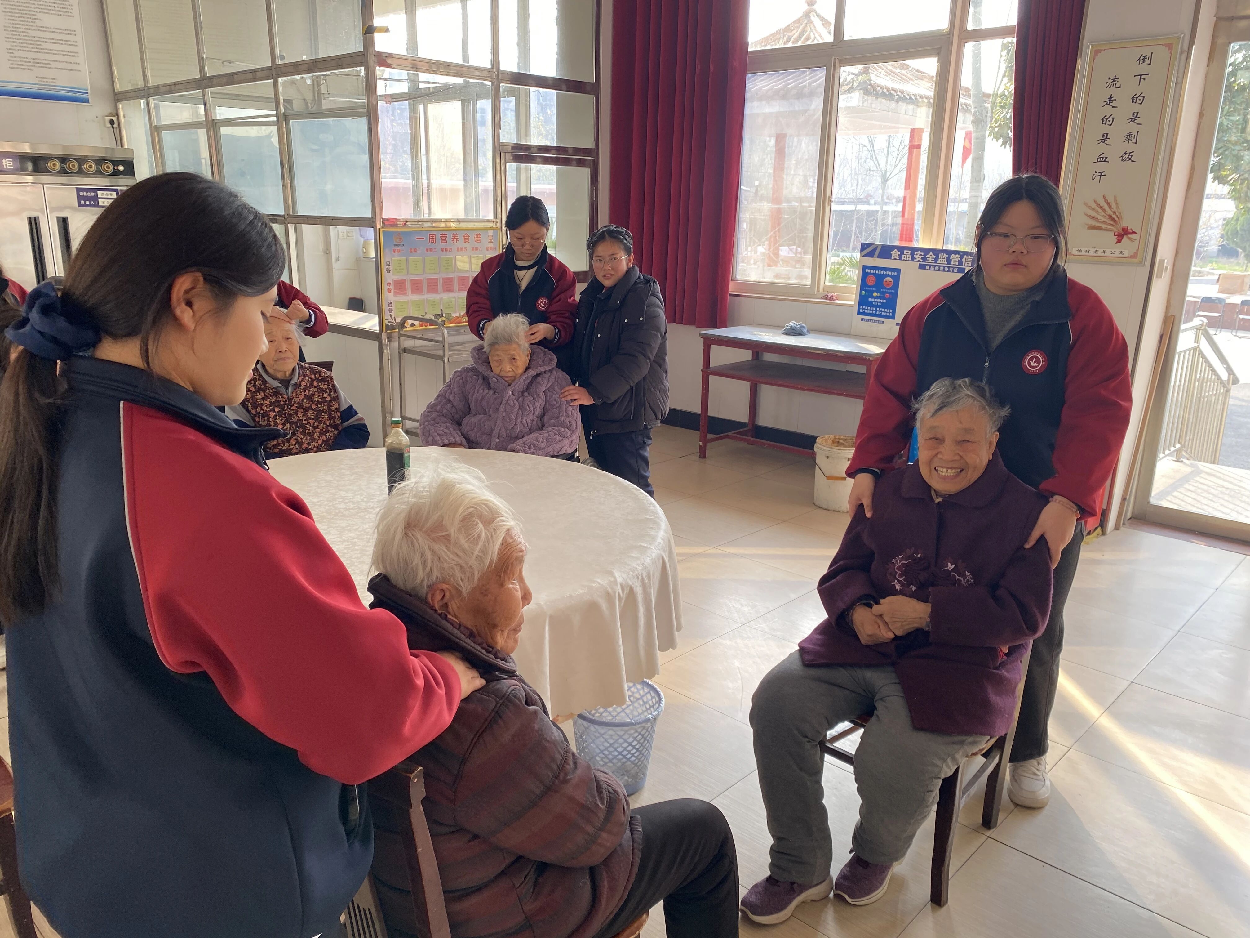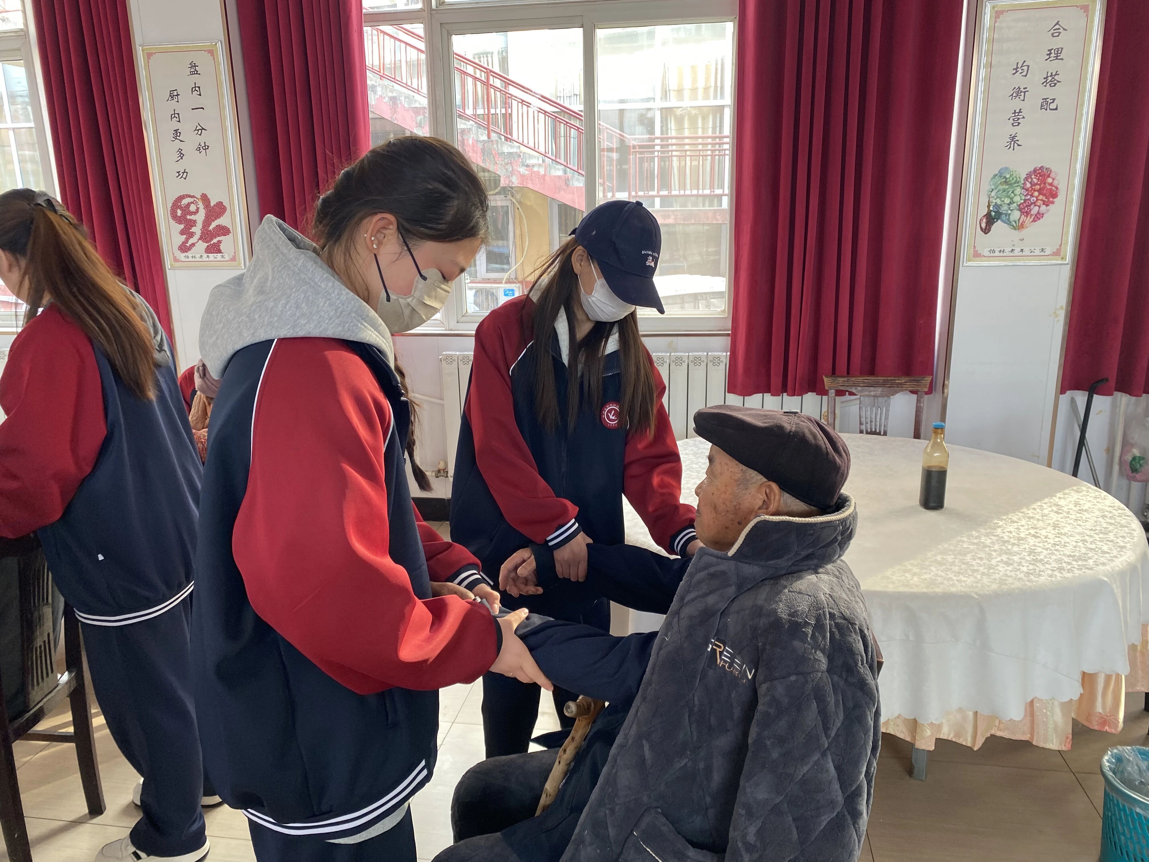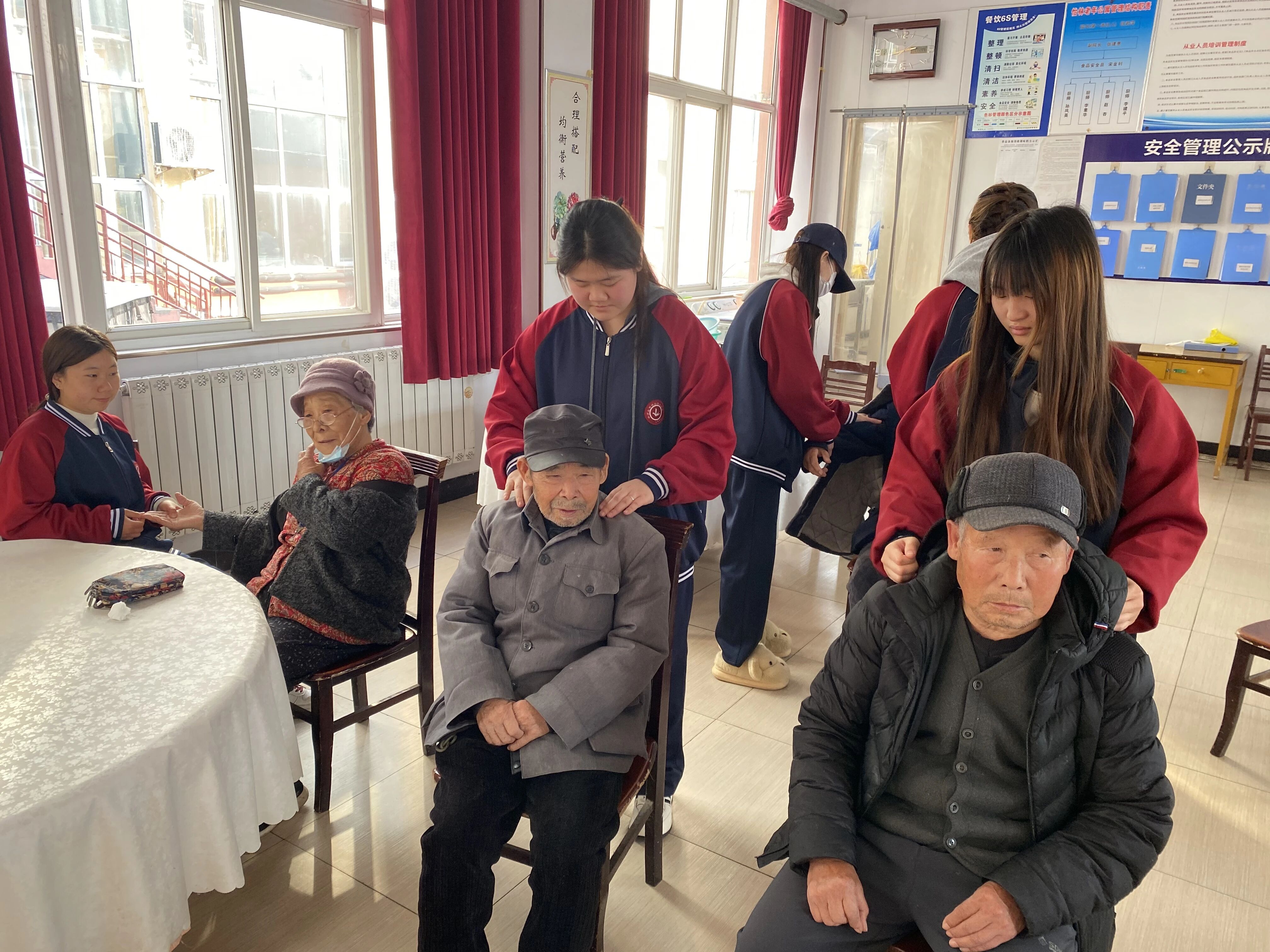 “感谢孩子们,按完之后肩膀轻松多了!”“学会了简单的护肤方法,以后每天都能照着做,太实用了”……老人们脸上洋溢着欣慰的笑容,不住地为学子们的专业与耐心点赞。学子们一边服务,一边与老人们拉家常,亲切的叮嘱、暖心的陪伴,让养老院里处处回荡着欢声笑语。