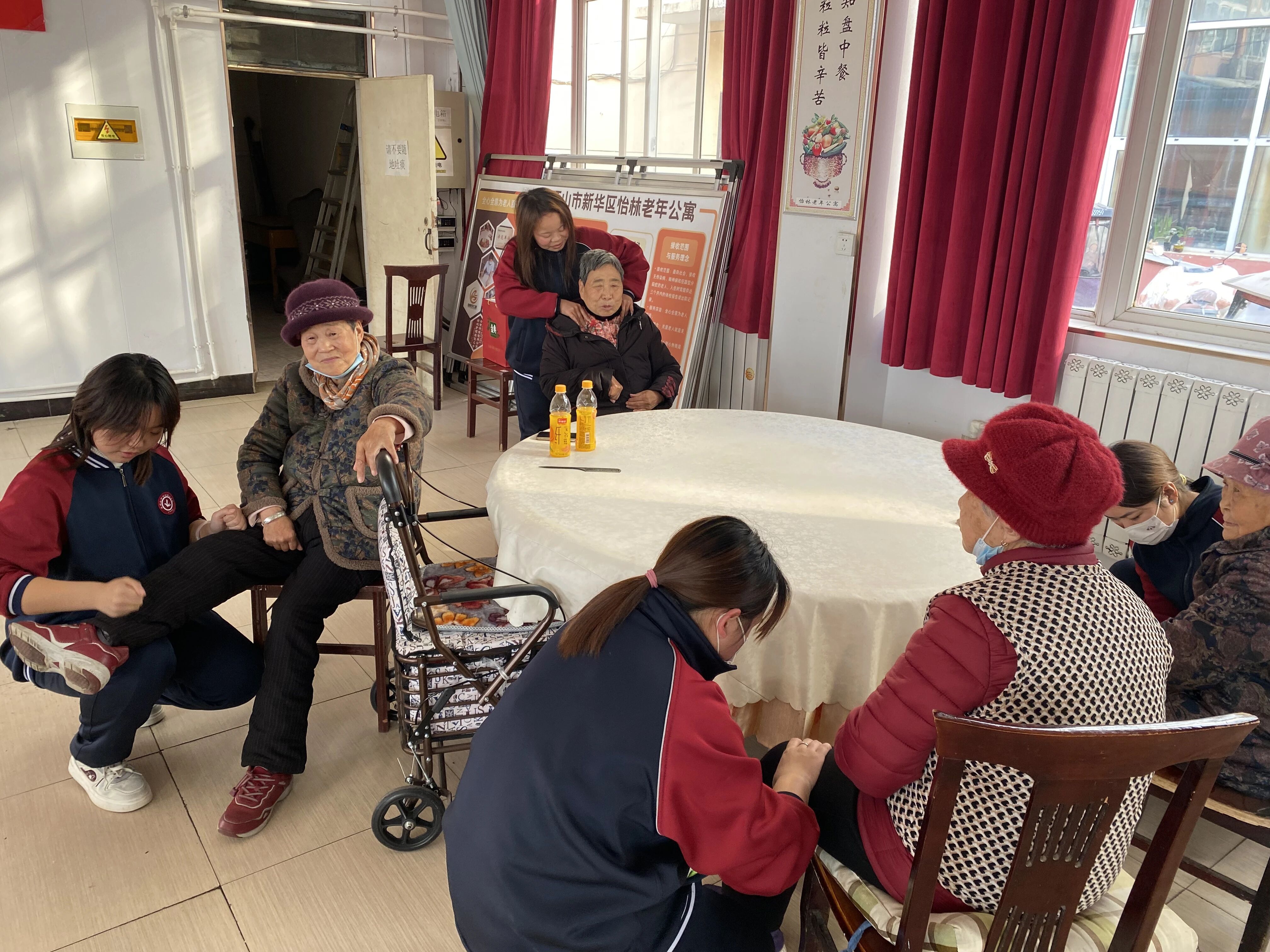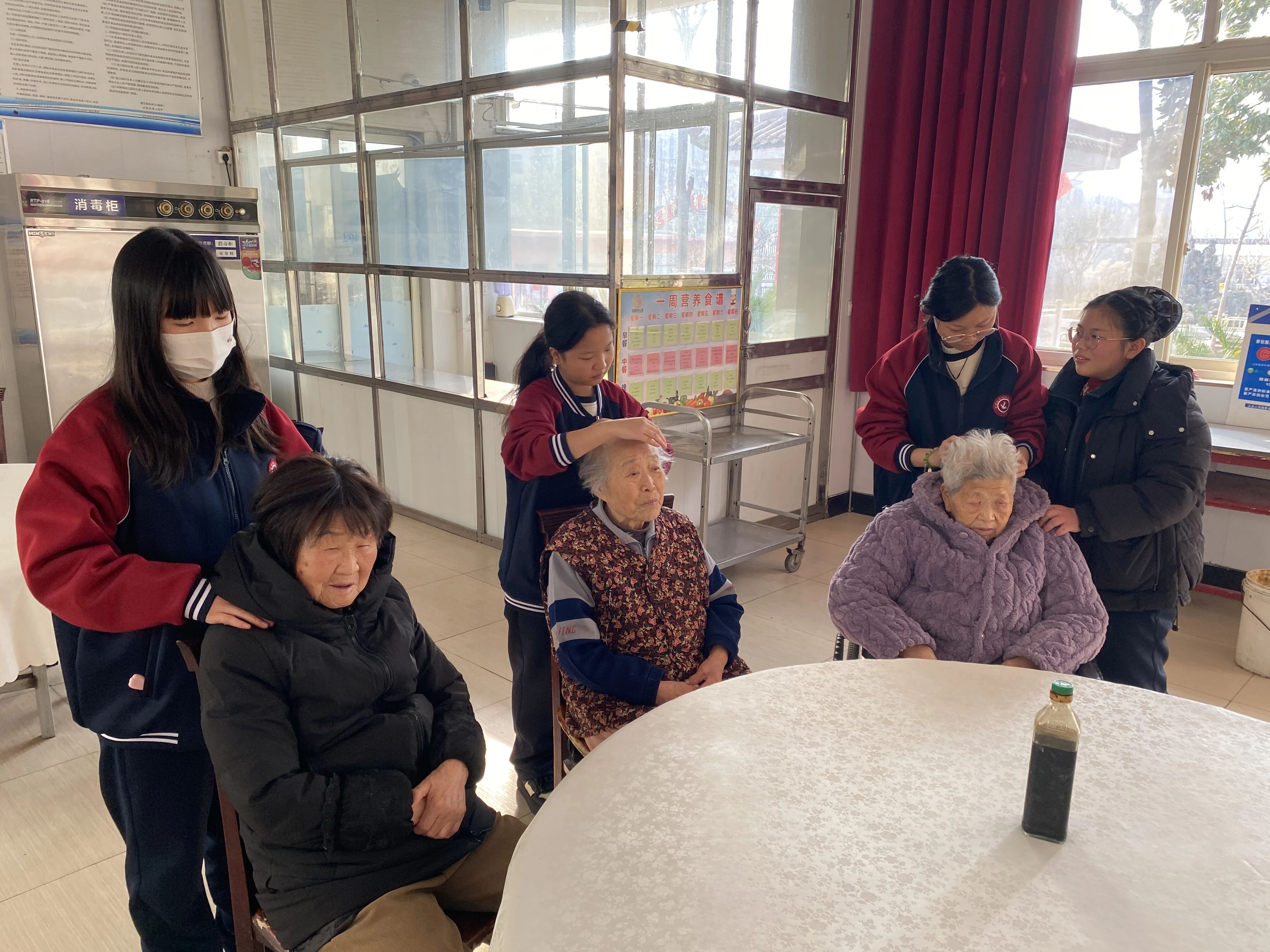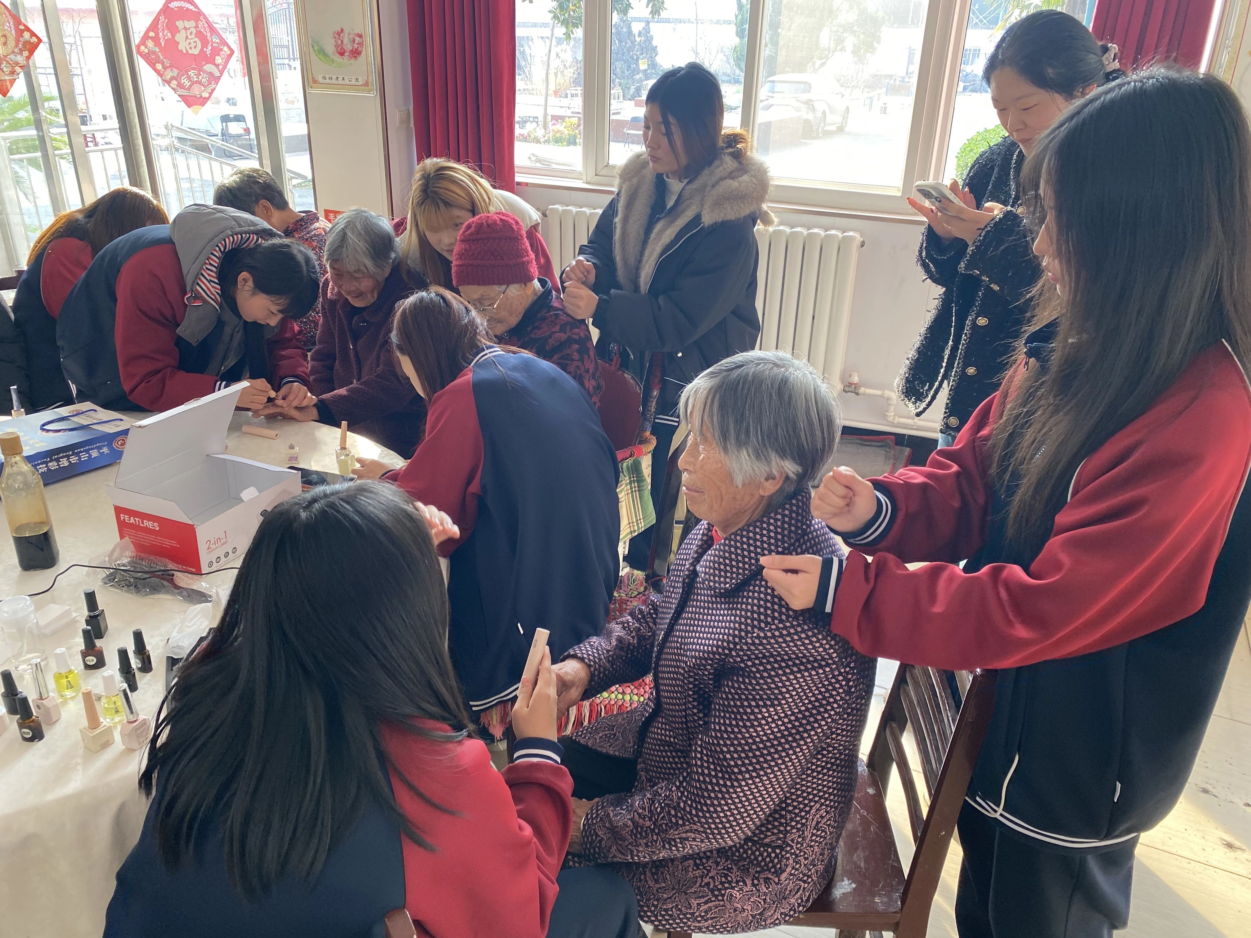 “感谢孩子们,按完之后肩膀轻松多了!”“学会了简单的护肤方法,以后每天都能照着做,太实用了”……老人们脸上洋溢着欣慰的笑容,不住地为学子们的专业与耐心点赞。学子们一边服务,一边与老人们拉家常,亲切的叮嘱、暖心的陪伴,让养老院里处处回荡着欢声笑语。