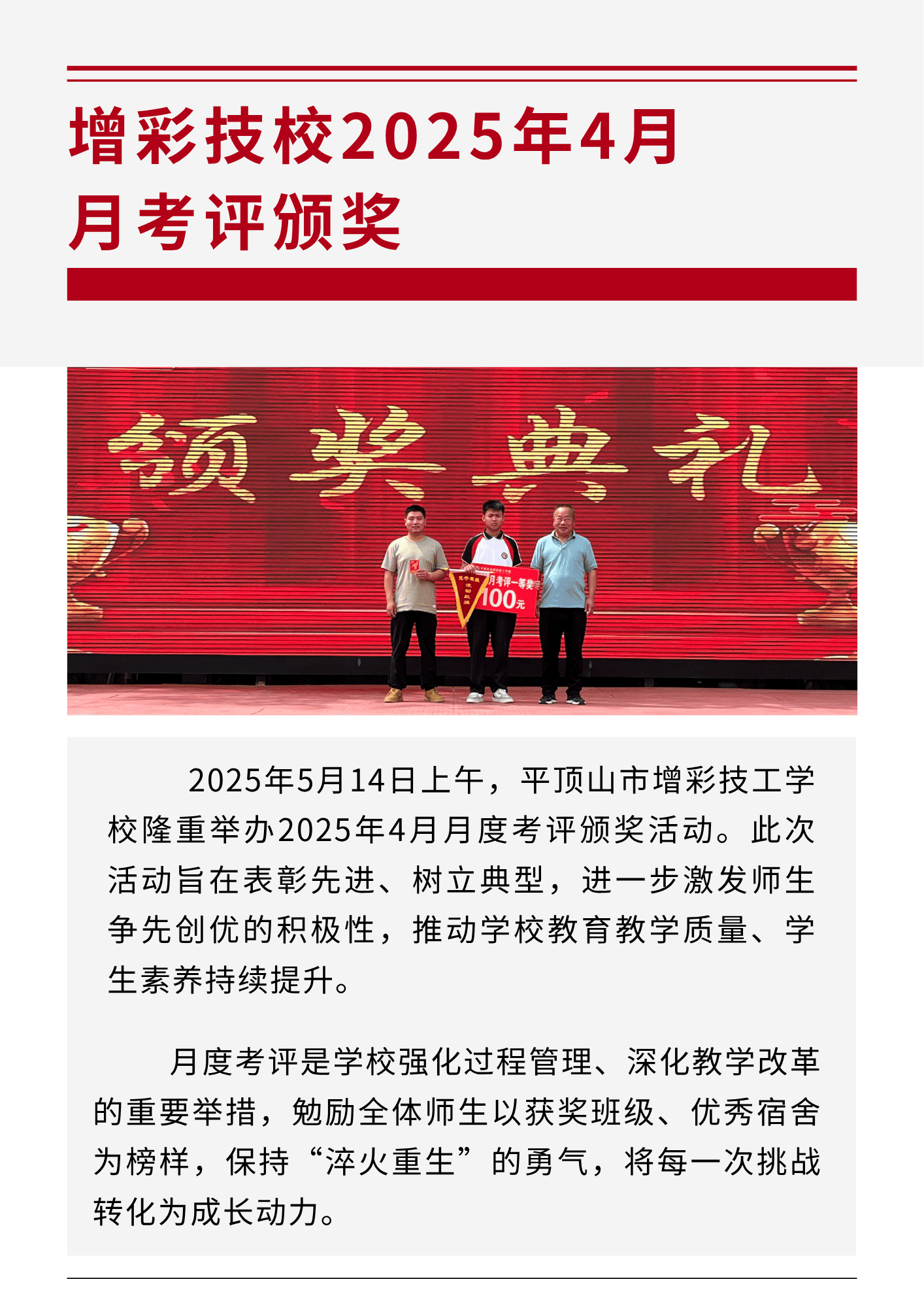 平顶山市增彩技工学校举行2025年4月月考评颁奖典礼